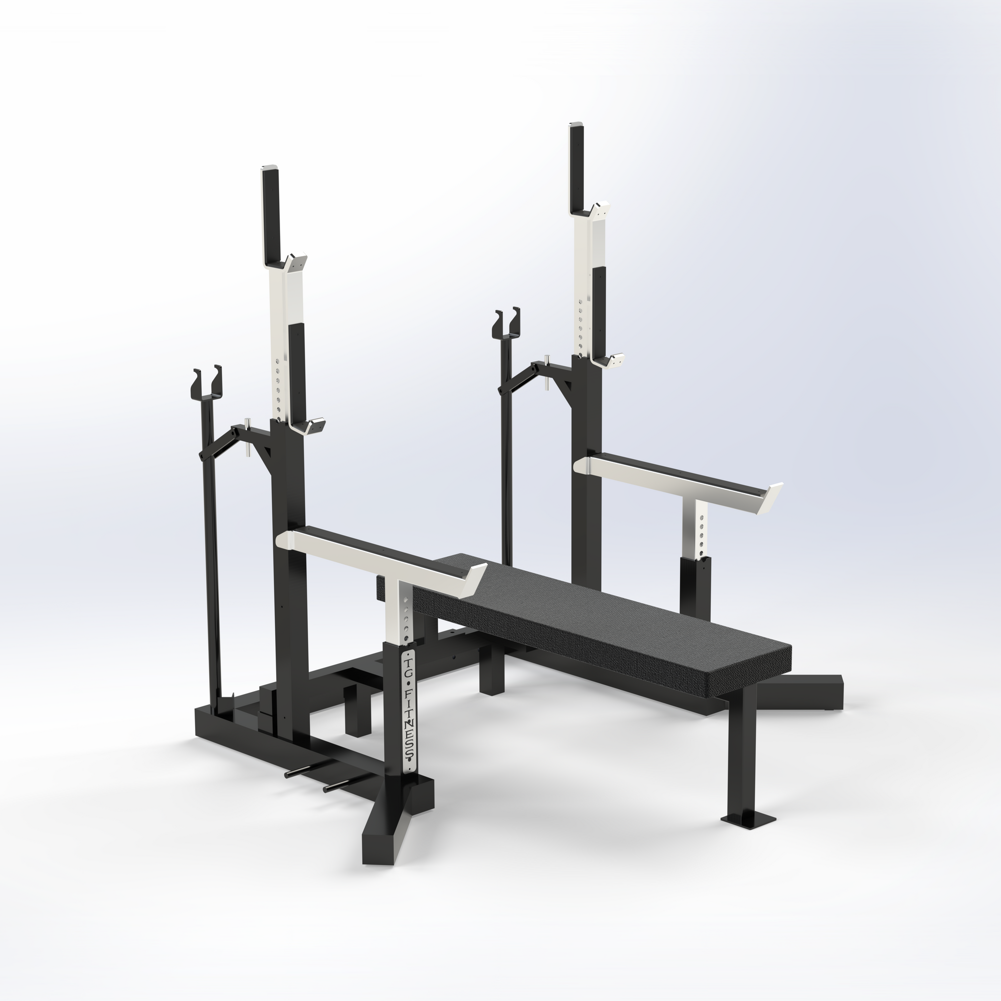 The removable bench slots into place with ease, and it built to IPF standard dimensions with a fixed spotter step at the back. The high quality vinyl and dense padding offers a comfortable and grippy surface for bench pressing.