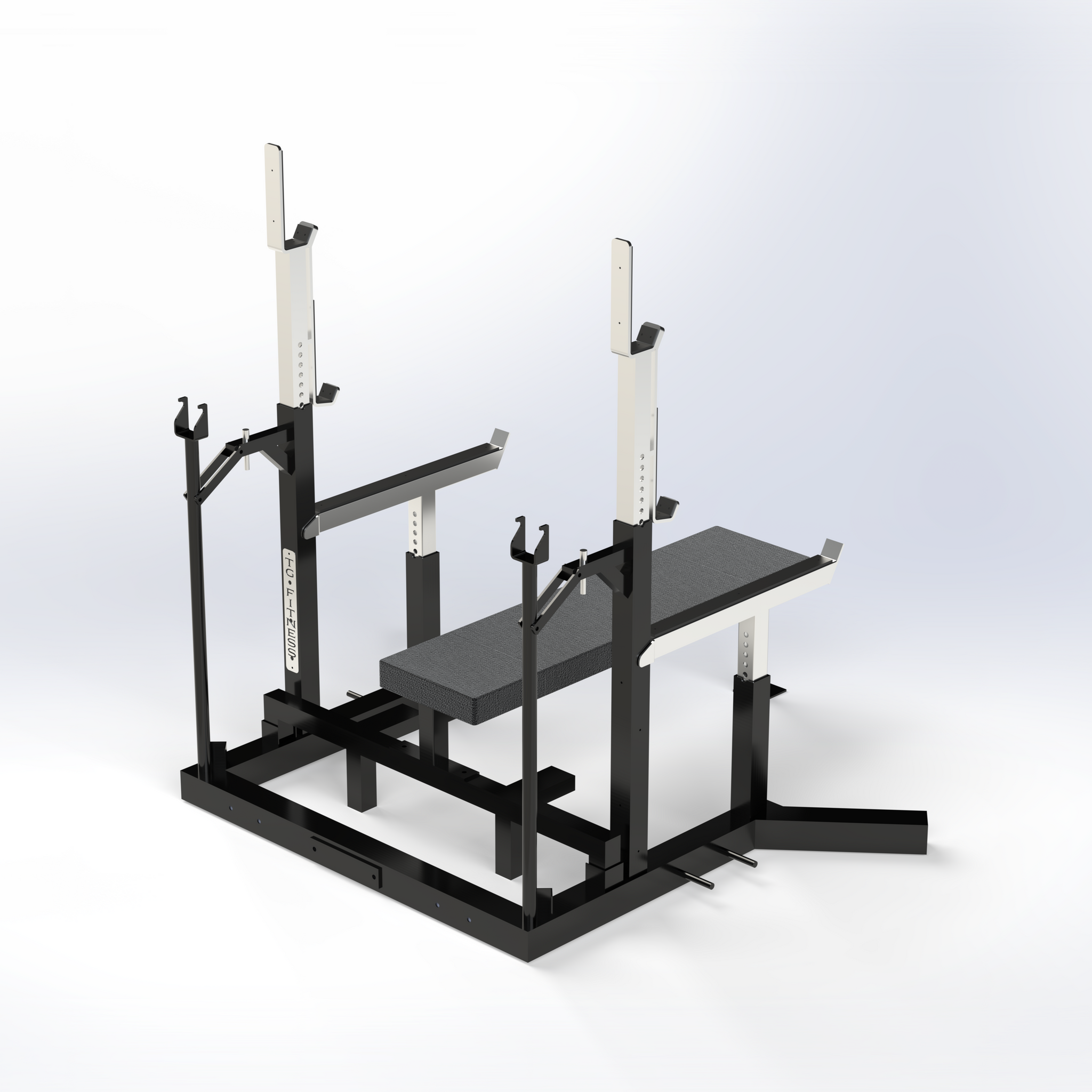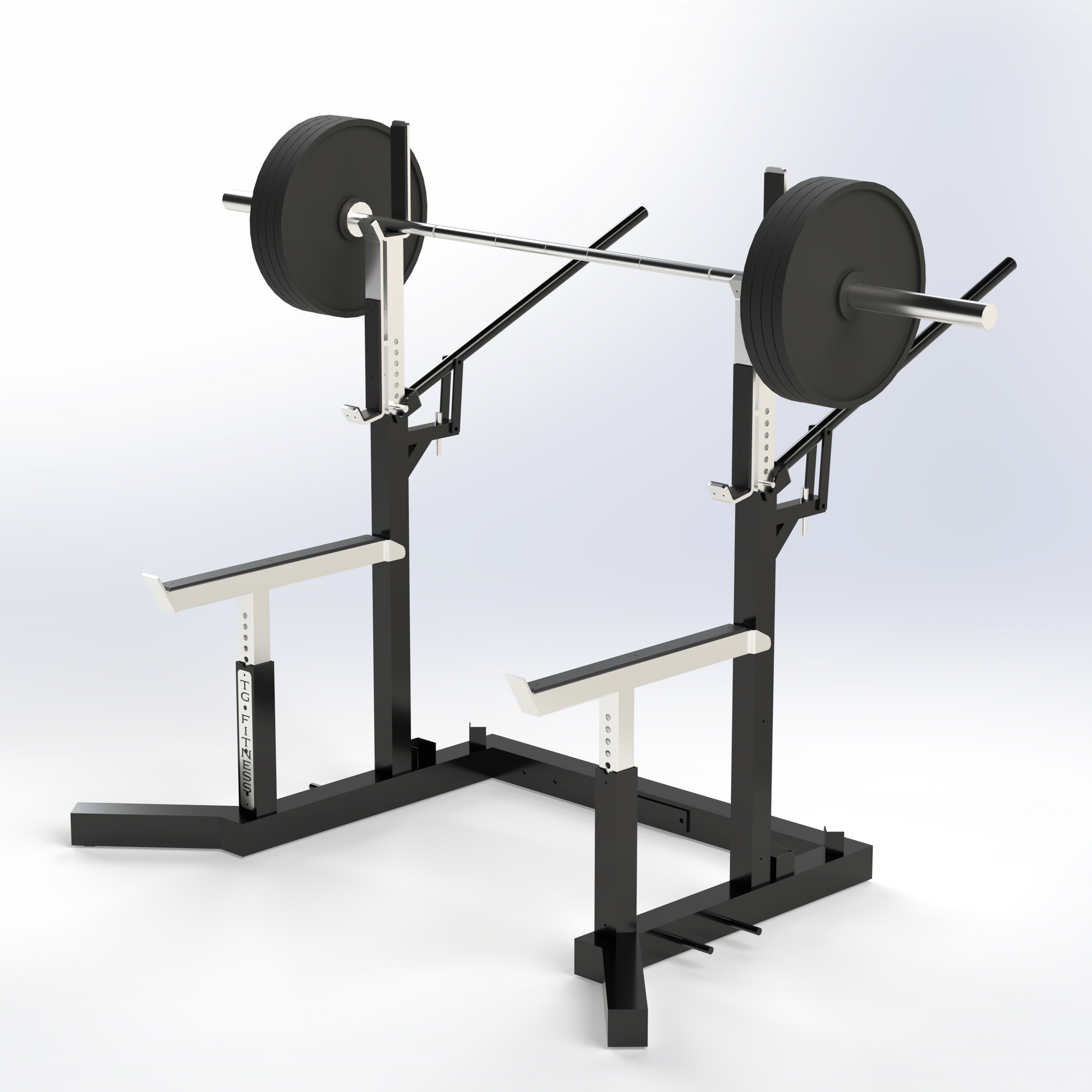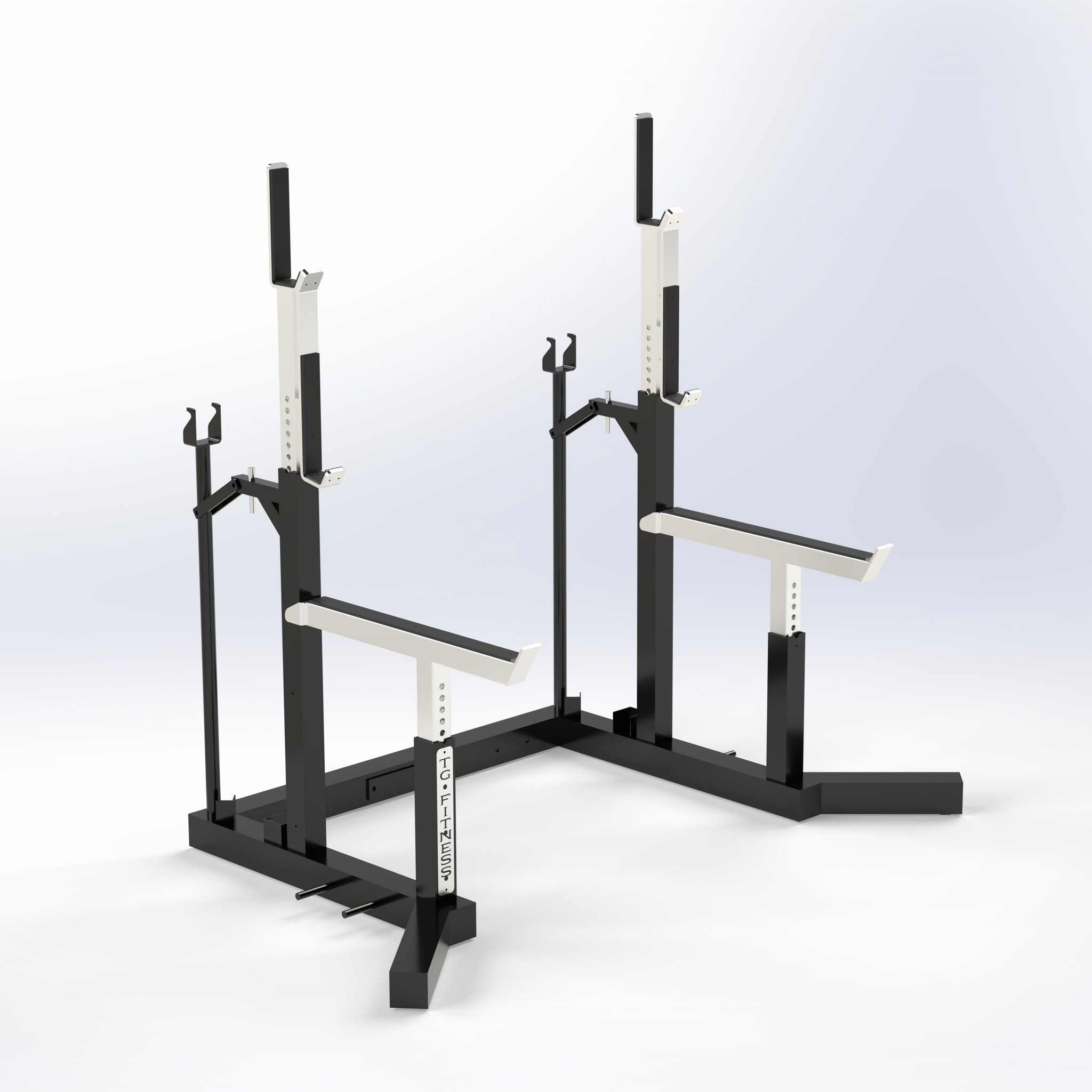 Our Combo Rack features IPF hole spacing on the squat and ben heights, as well as heavy duty removable safety arms that are fit to handle any weight you drop on them.