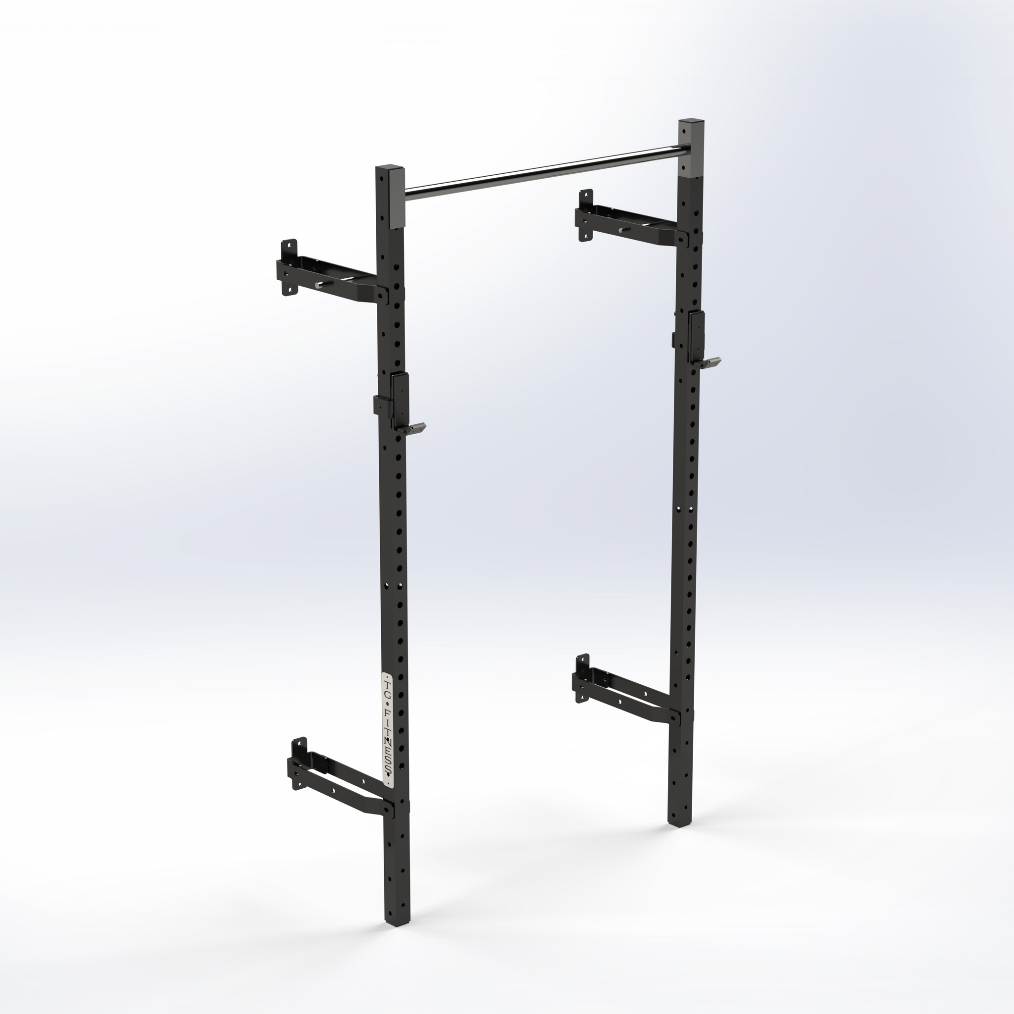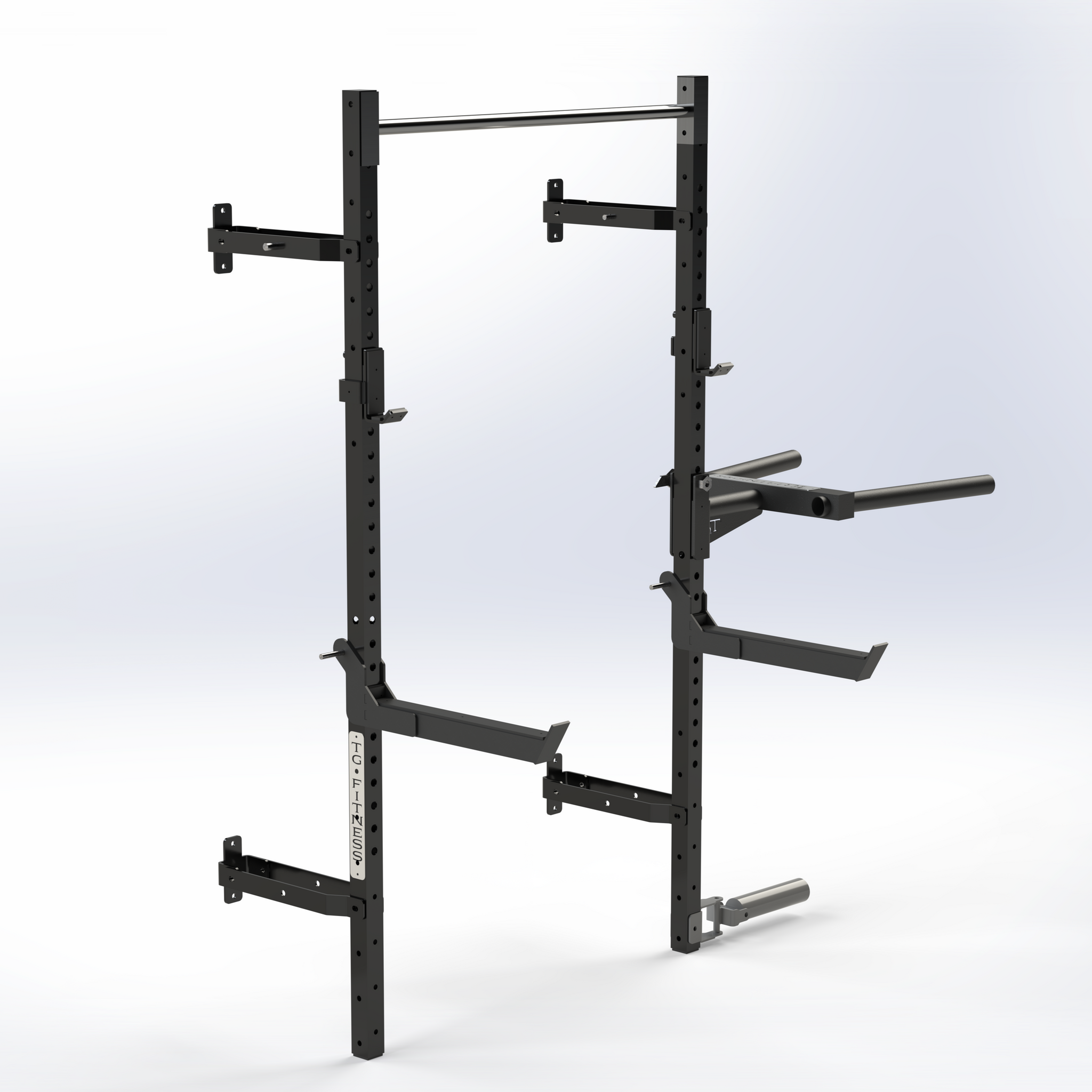 This rig is compatible with all attachments offered on our site, and is a perfect solution to a space-conscious training area. Simply fold the rack up when to utilise all your floor space. Couple this with our storage options and you can store your entire gym up on the wall!